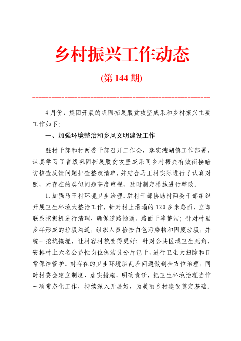 乡村振兴工作动态 (第144期)